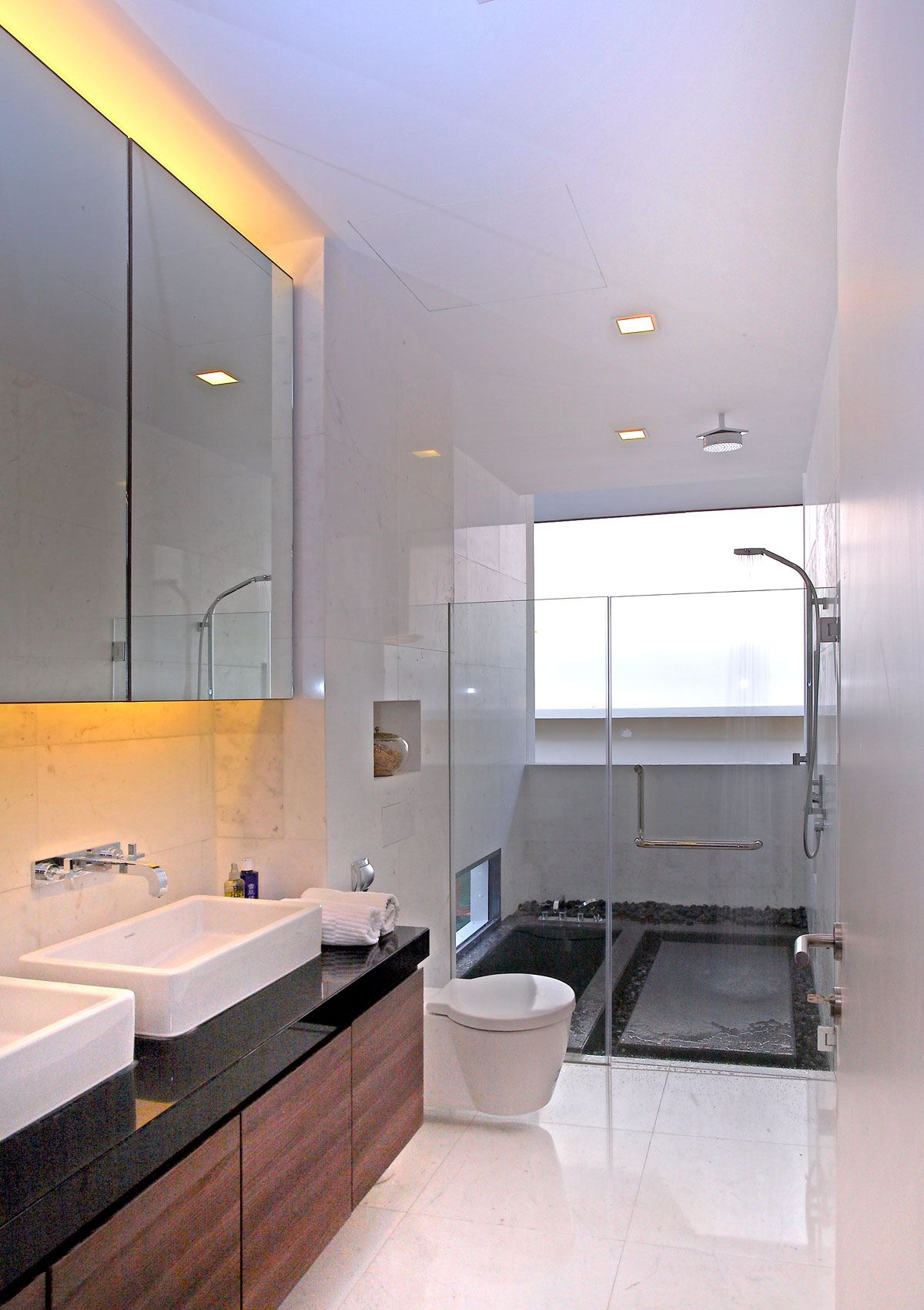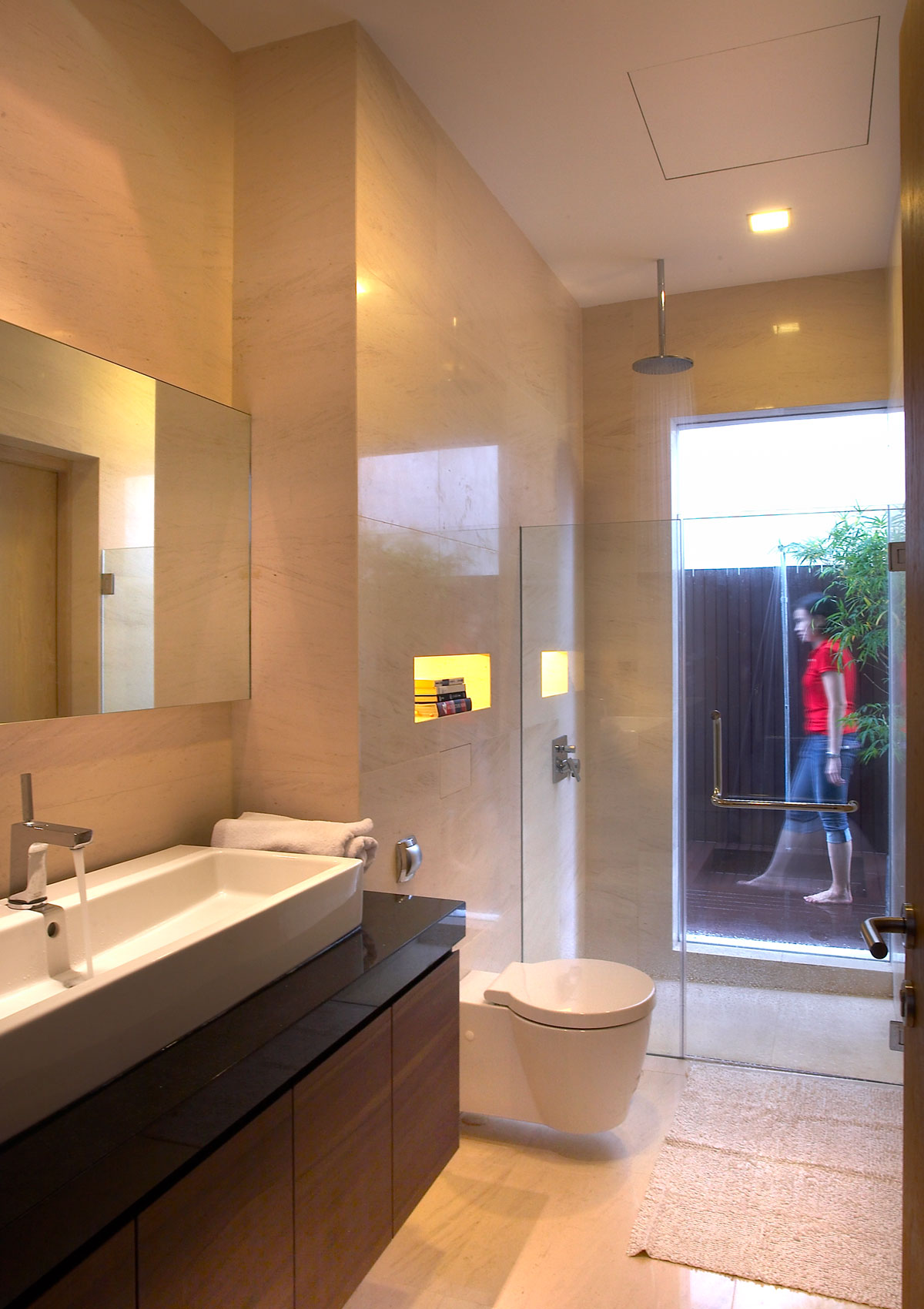 A light-filled open-plan home characterised by double-height areas and a seamless flow of space. Cooling breezes flow throughout the home as a result of its efficient new layout, conceptualised after an intensive on-site study of the weather conditions at the house. A pool nestled unusually by the side of the property was placed "to induce a cooling draft to occur". This flows into the living room and dining area flanking it, then into the bedrooms upstairs.