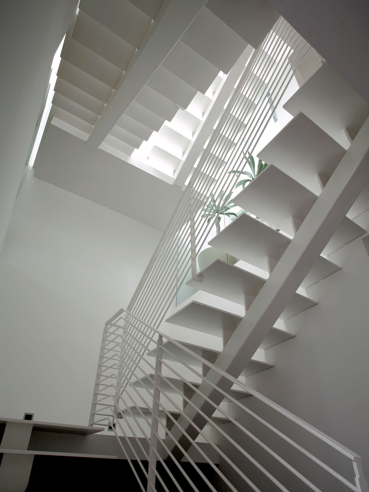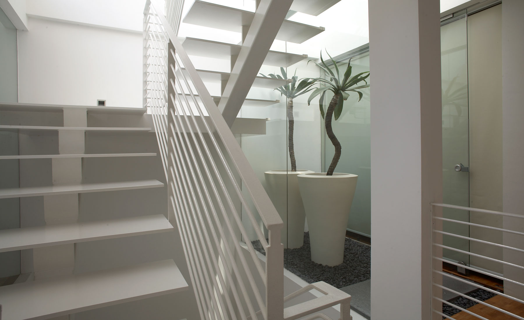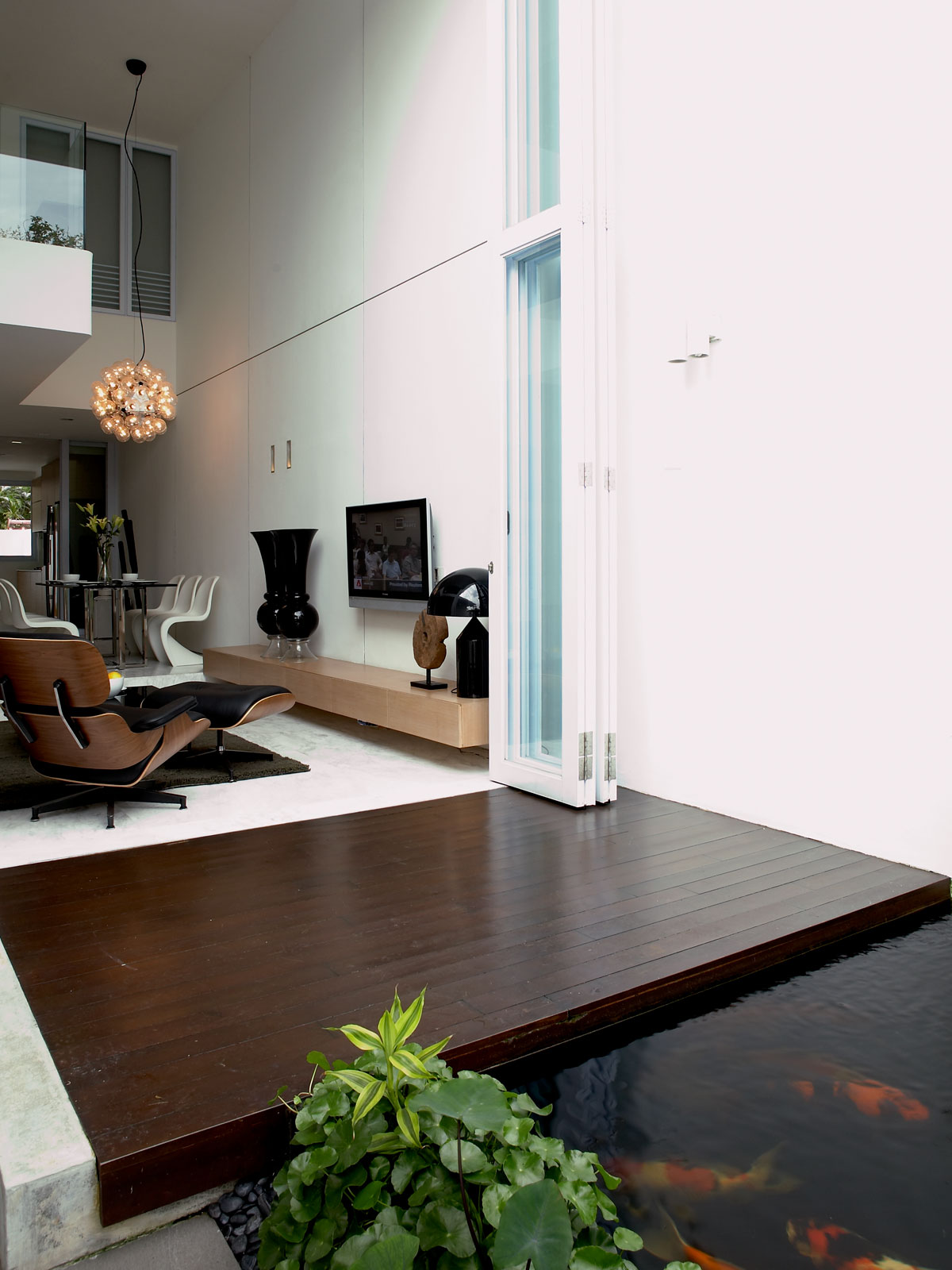 "The home owner is a koi fish enthusiat, so this was our way of extending the line of sight from the living room all the way into the pond, which is set just in front of the house"